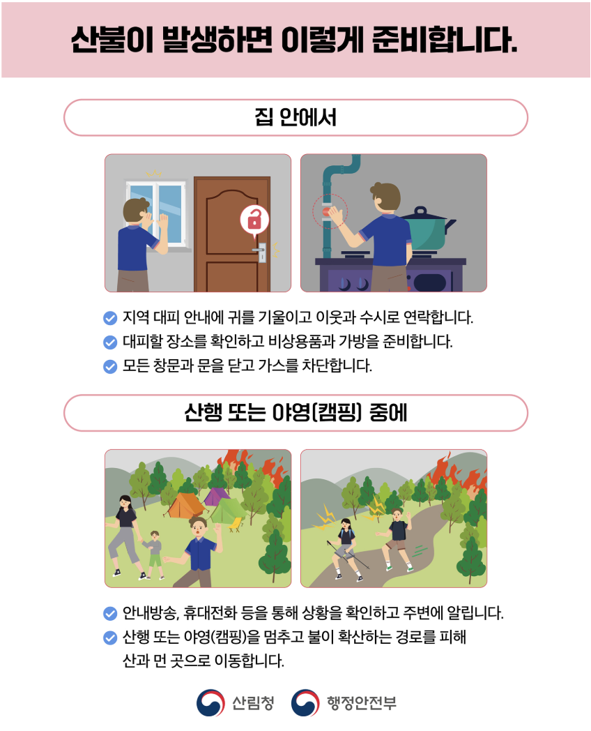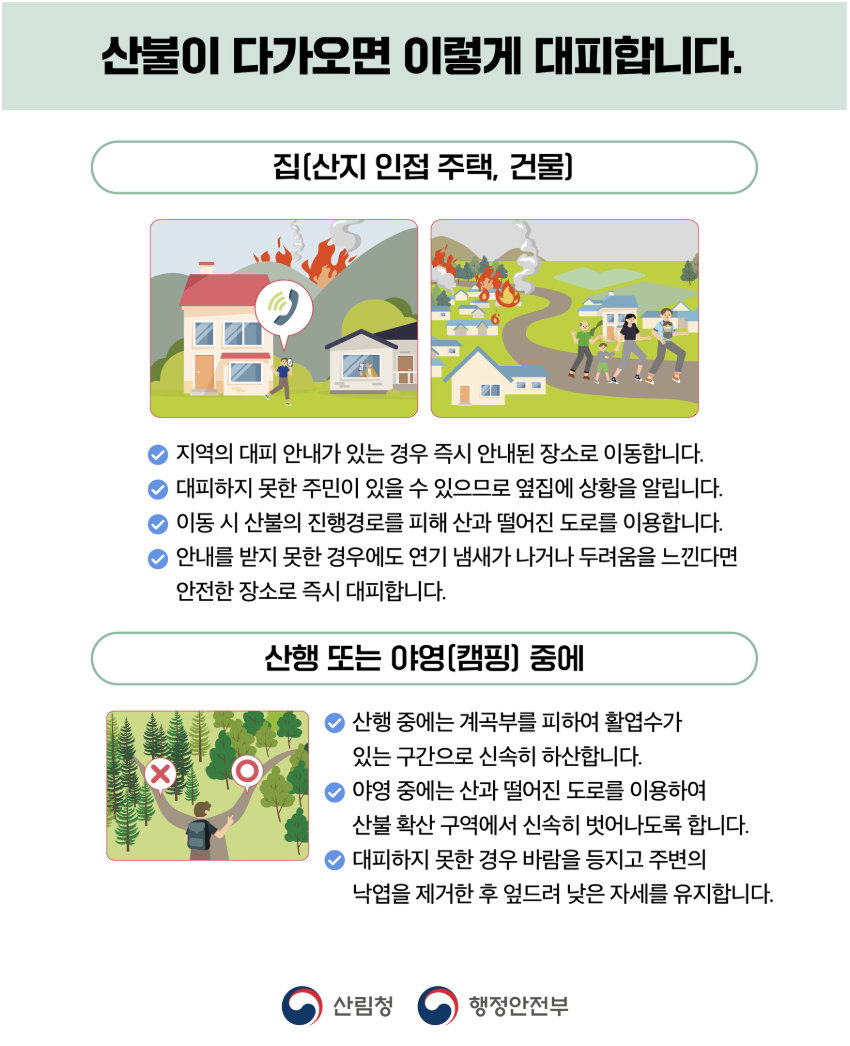 산불 발생시 대피방법 및 행동요령 바로가기👆