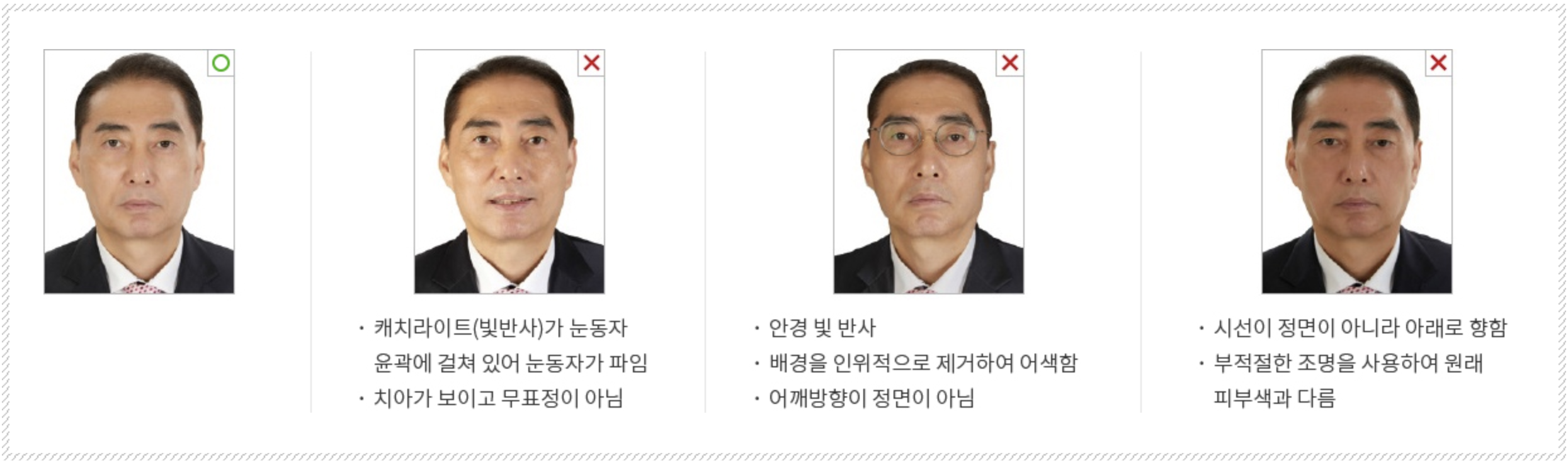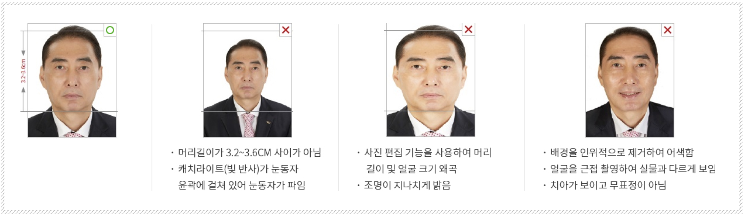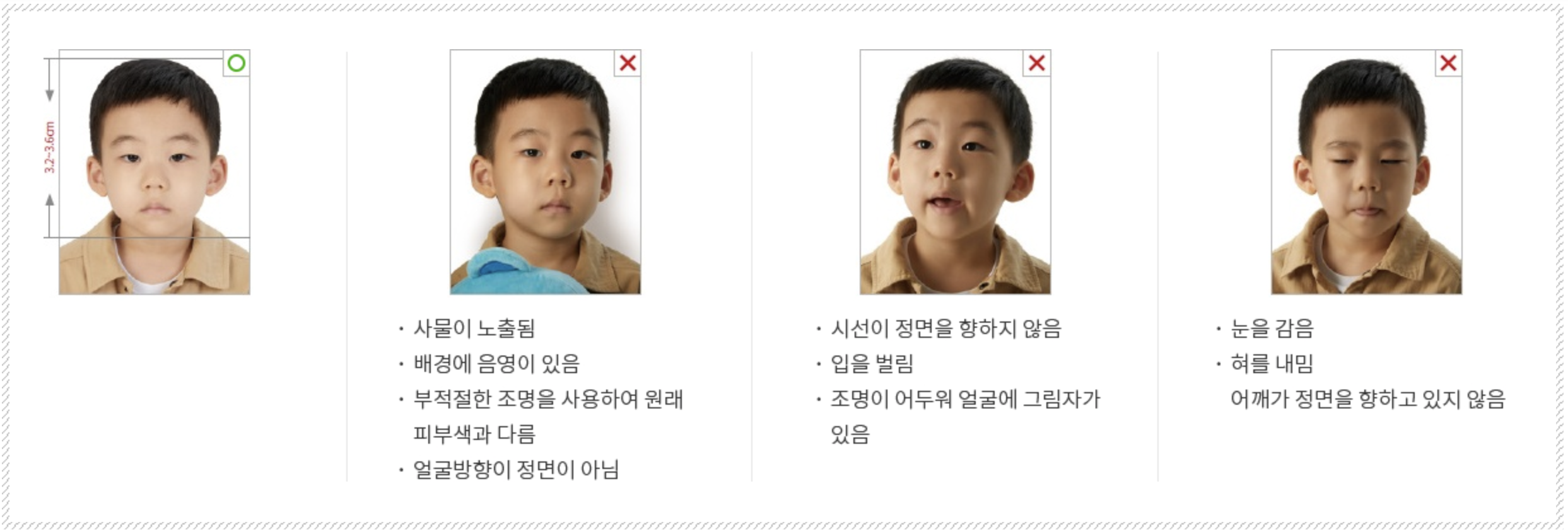 • 사진 규정 미준수 시 심사 반려 가능. 외교부 여권 홈페이지(www.passport.go.kr)에서 규정 확인 필수.