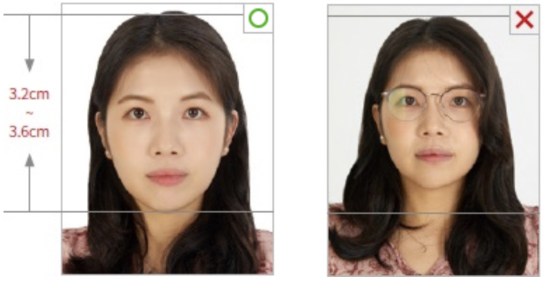 • 여권용 사진 업로드: 최근 6개월 이내 촬영한 규격 사진(가로 413픽셀 × 세로 531픽셀, 흰색 배경, 얼굴 길이 3.2~3.6cm).