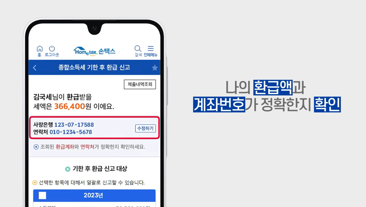 - 환급 대상 확인: 홈택스에서 본인 확인 필수