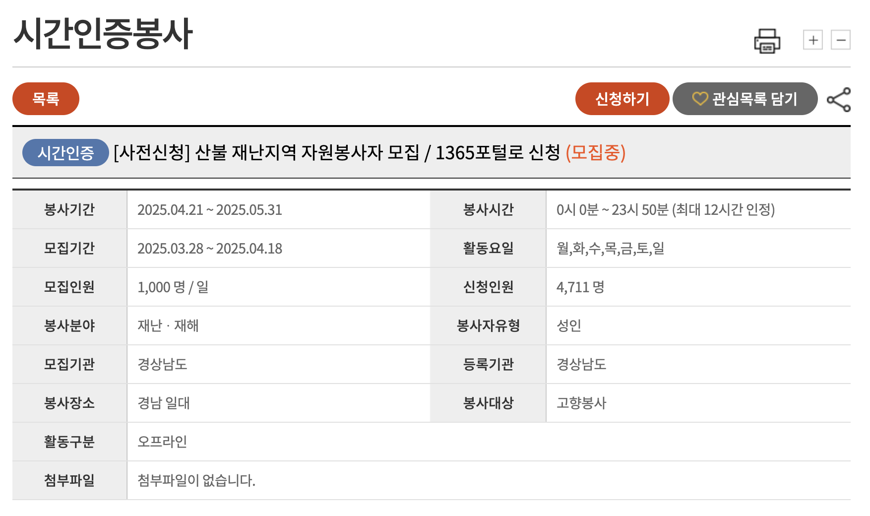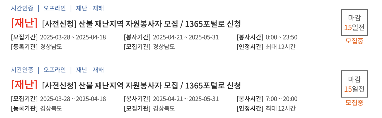 1365 자원봉사 포털 사이트에서 산불 피해 지역 봉사활동을 찾았다면, 신청은 간단합니다.