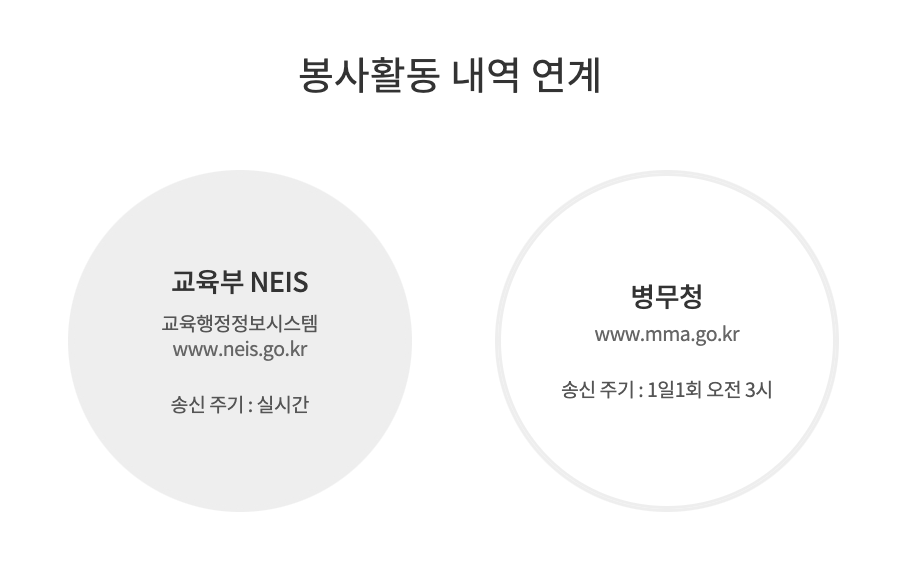 ✅ 봉사 실적 연계 동의 (선택사항): 봉사 실적을 나이스(NEIS)나 VMS와 연계하려면 주민등록번호 입력 및 동의가 필요합니다.